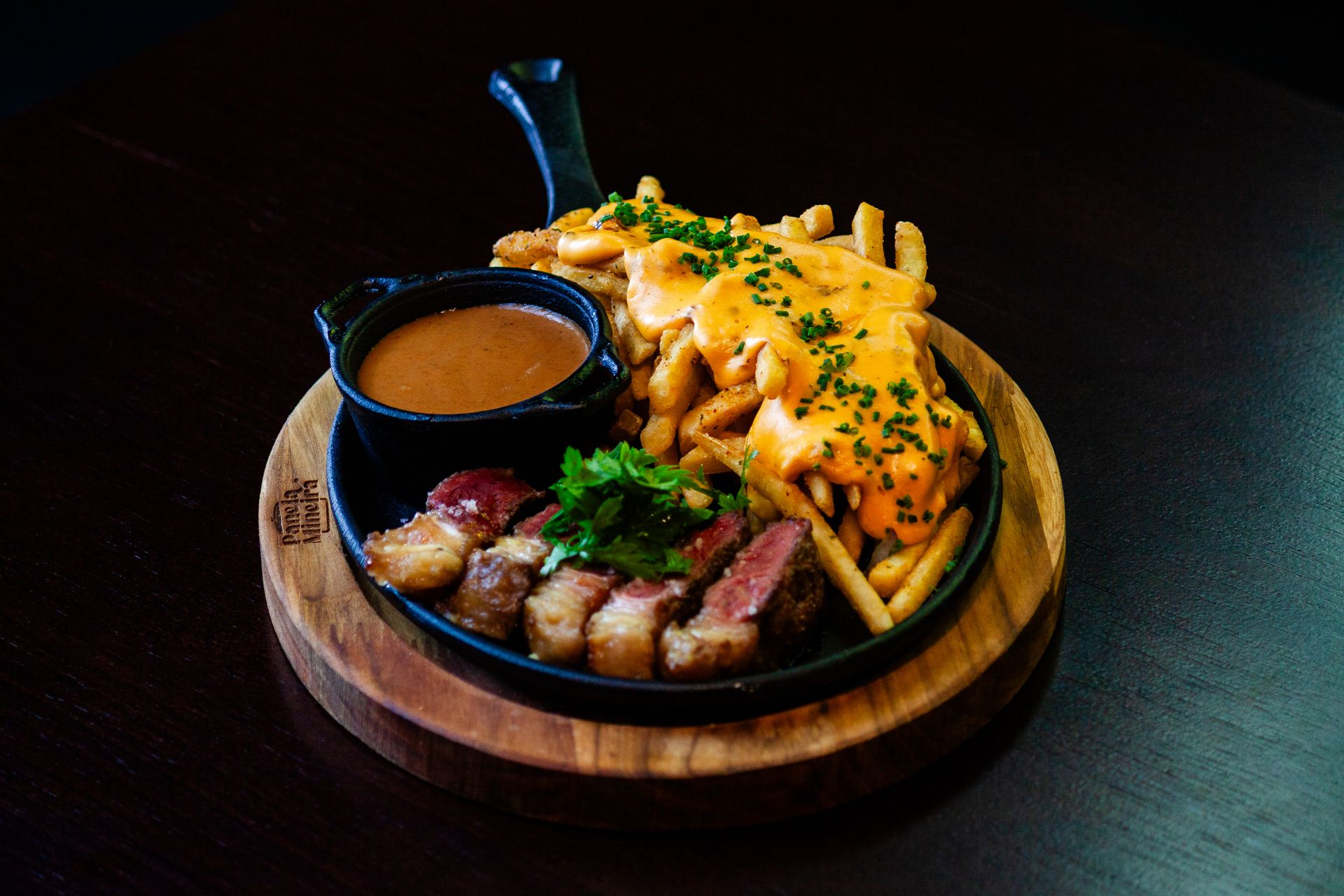 Steak de chorizo maturado de angus certificado, gremolata e spicy rock sauce, acompanhado de Classic Fries com american cheese