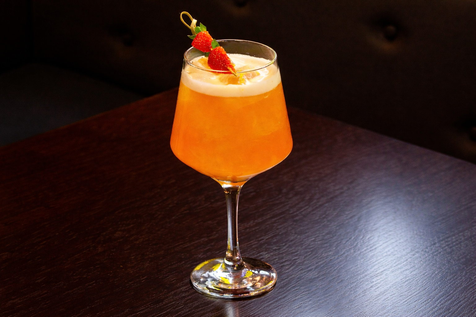 Gin, tangerina, limão, soda de toranja e espuma de côco