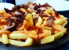 Batatas fritas sequinhas e crocantes, temperadas com rub para batatas do Ponto Rock e cobertas pelo Chili com carne e american cheese da casa