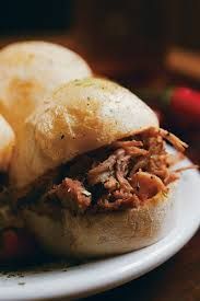 Pão baguete artesanal, pernil do Ponto Rock, alface americana, purê de tomates, molho do pernil, gremolata e muçarela tostada, acompanhado de Classic Fries